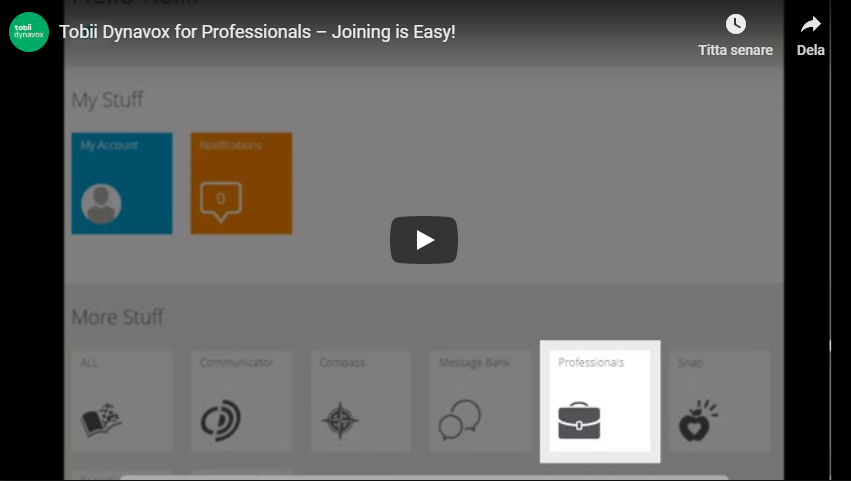 Regardez cette vidéo rapide et apprenez comment devenir membre de Tobii Dynavox for Professionals dès aujourd'hui !