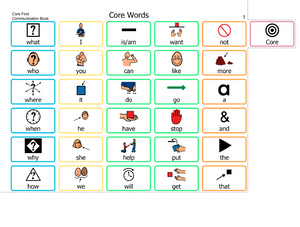 Core First est un ensemble de pages au cœur de notre application TD Snap AAC. Il offre aux personnes qui ne peuvent pas parler un moyen simple mais robuste de combiner des mots et des symboles pour une communication efficace.